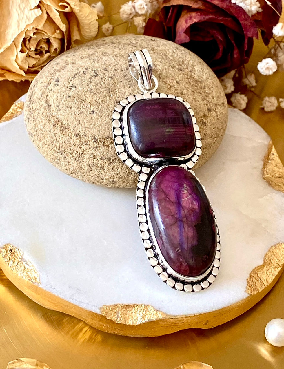 Purple Labradorite Handcrafted Pendant+Chain